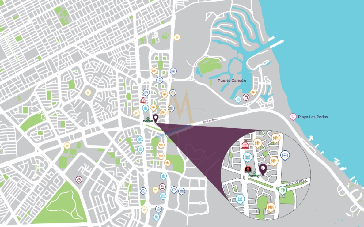 Estos departamentos se encuentran ubicados estratégicamente justo en la entrada principal de la Zona Hotelera, rodeado de negocios, principales oficinas corporativas, bancos, notarías e instituciones.