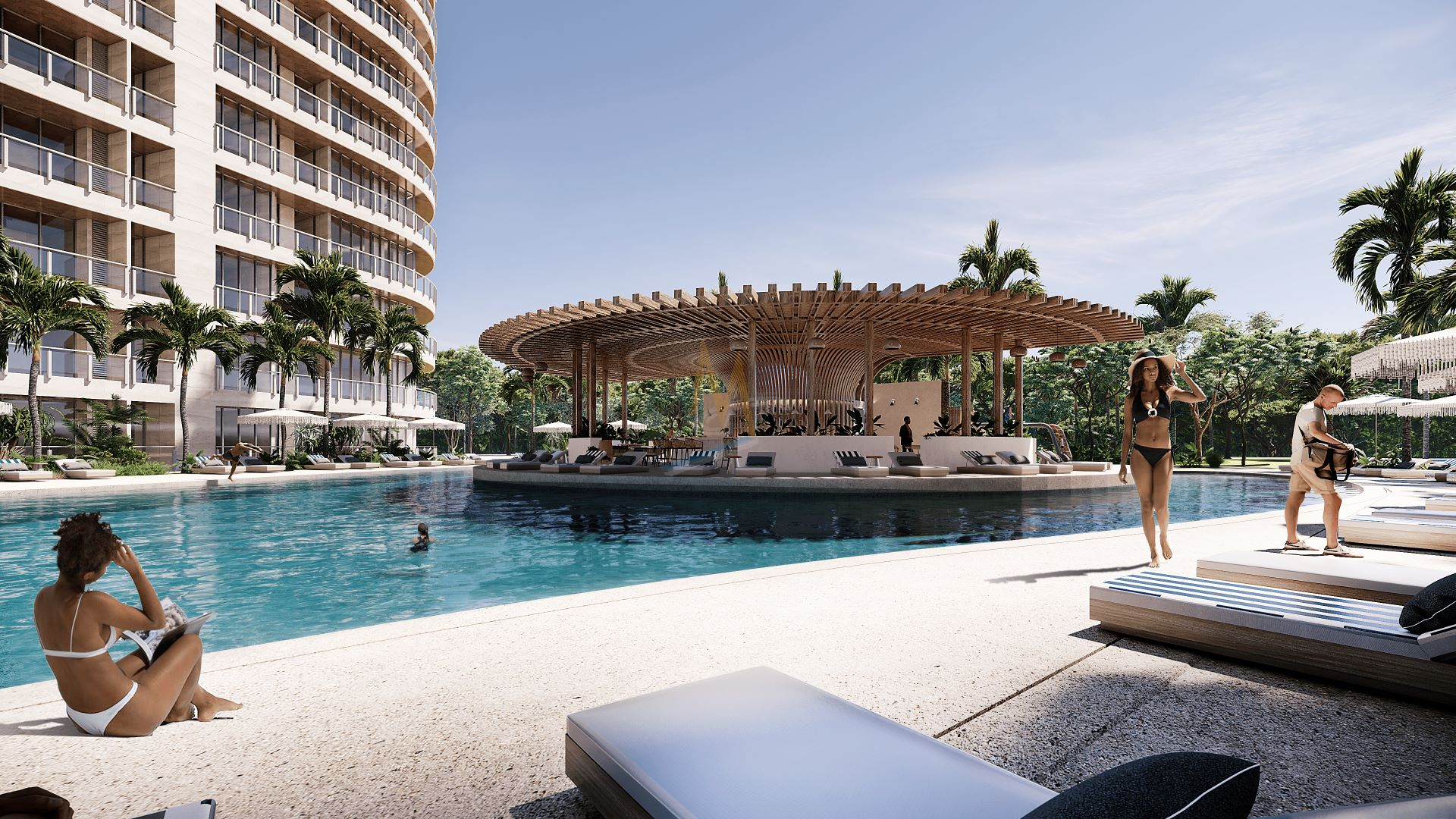 Casa club con: restaurante, kids club, sport bar, sala de cine y lounge para reuniones de trabajo.