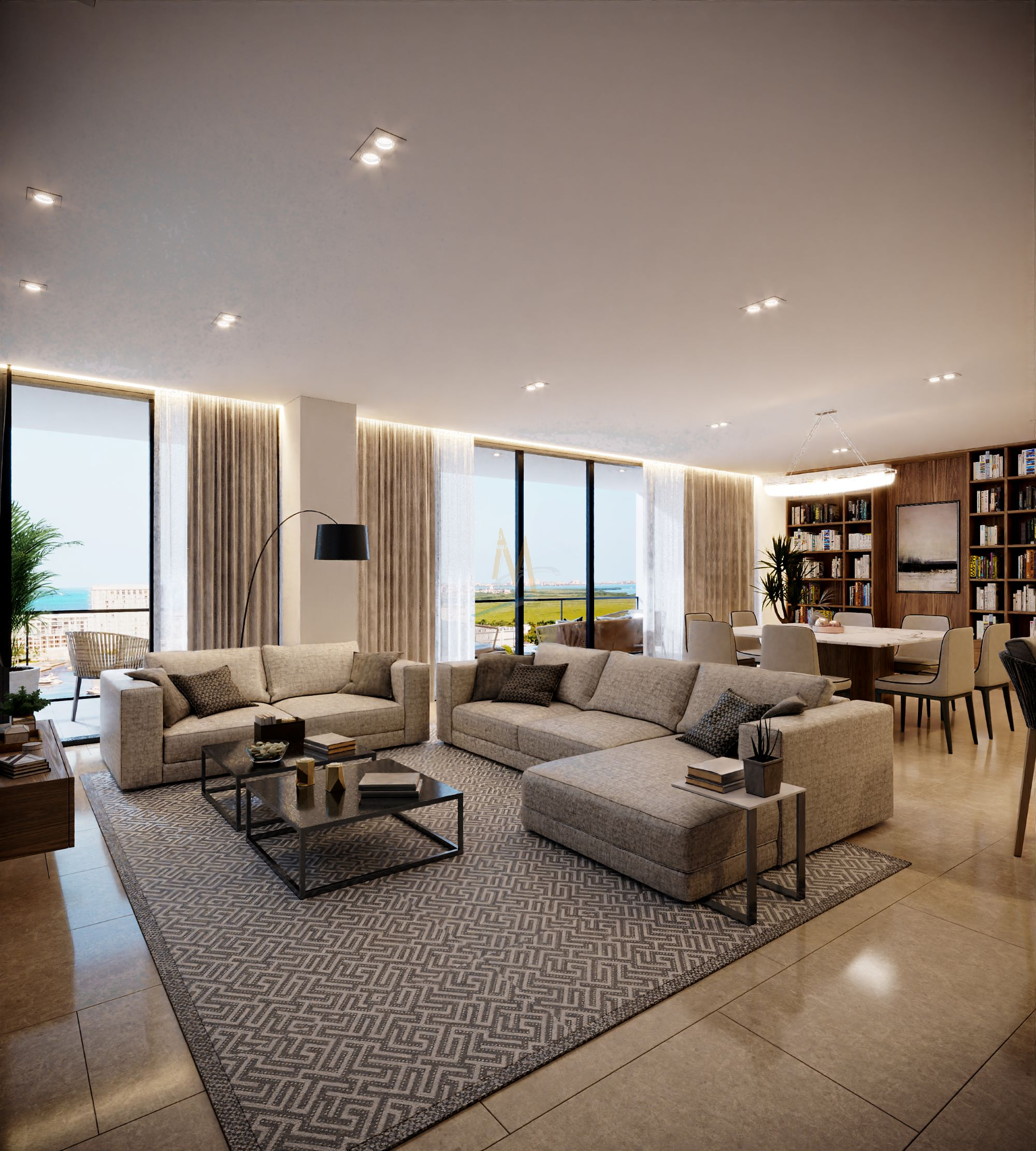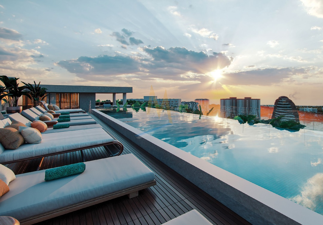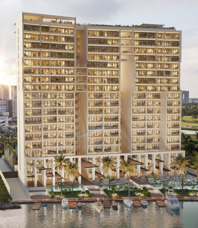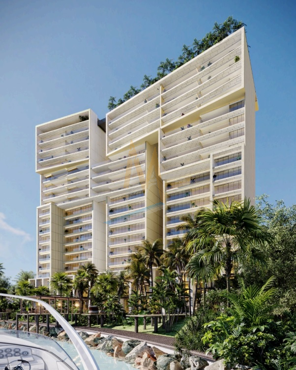 El proyecto consta de una torre de 20 niveles y 4 tipos de departamentos, los residentes y visitantes de este lujoso condominio podrán tener acceso a lobby, restaurante, gimnasio indoor y outdoor, spa, andadores, albercas, cancha de tenis y paddle, ludoteca- coworking, salón de eventos, muelle, terrazas, simulador de golf, rooftop con alberca, restaurante, bar, entre otros.