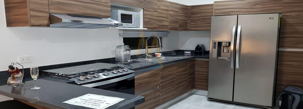 El departamento cuenta con 3 dormitorios, 2 baños, totalmente amueblado, con aire acondicionado y 2 cajones de estacionamiento.